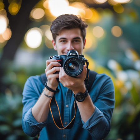 Smiling Photographer with Camera: Capturing Moments with Joy