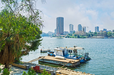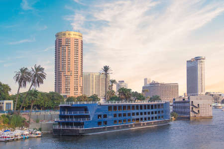 CAIRO, EGYPT - DECEMBER 29, 2021: Beautiful view of the Nile embankment in the center of Cairo, Egypt