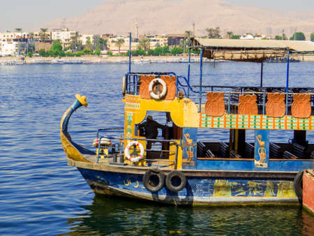 LUXOR, EGYPT - NOV 30, 2014: TOuristic boat over the river NIle near Luxor. Nile is 6,853 km long. The Nile is an international river shared by eleven countries