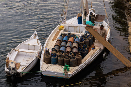Transportation of gas bottles from Aswan mainland to elephantine island in Egypt