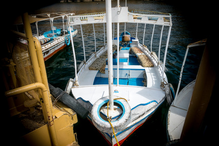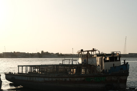 Egyptian Boat on the Nile River for Passengers transportation to Another Riverside in Luxor city, Egypt