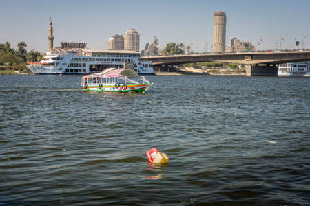 Cairo, Egypt, 5th January 2015 - water taxi and plastic pollution on the River Nile, Egypt