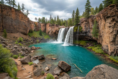 Waterfall in rocky canyon with turquoise water