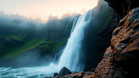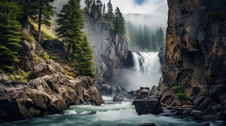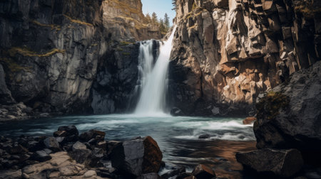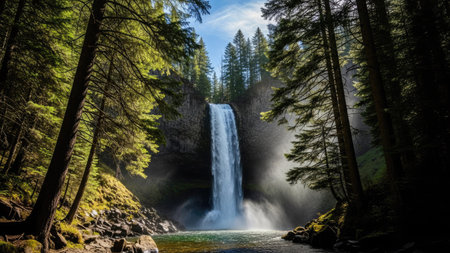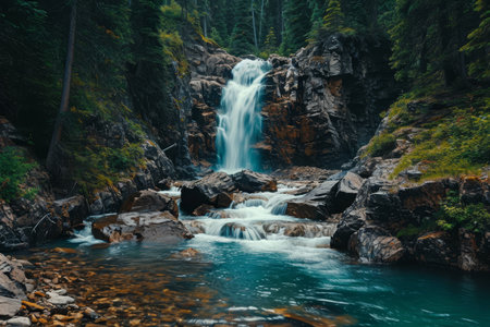 A cascading waterfall, with dinkiness and sprinkle making an ethereal spread impact internal parts the checking talk by and huge. Creative resource, AI Generated