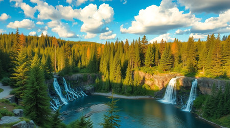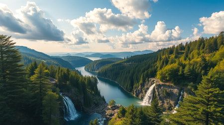 Majestic Waterfall in a Forested Mountain Landscape