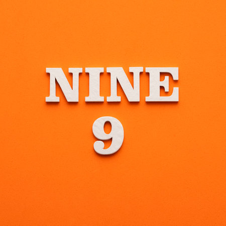 In white letters the word nine on an orange background