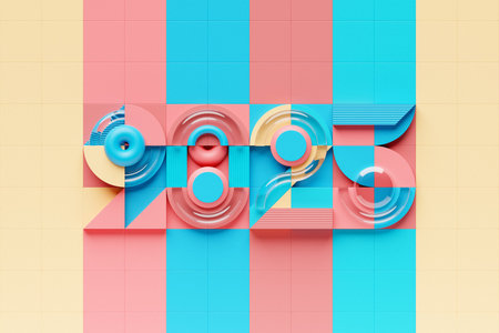 Happy New Year 2025. Volumetric multi-colored Numbers of 2025. Trendy Christmas background. Realistic 3d illustration