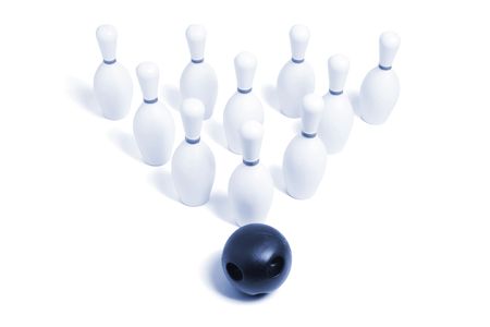 Ball game in bowling. Skittles, bokeh in the background. Theme for design