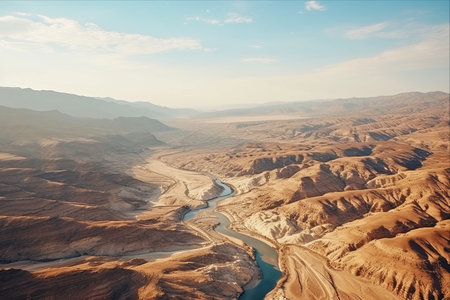 Captivating Perspectives: Mesmerizing Aerial Drone Footage Unveiling the Majestic Golden Desert Mountains along the Tzin River in Israel