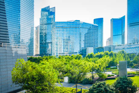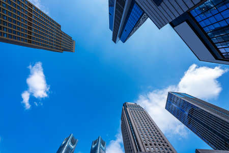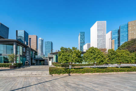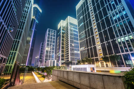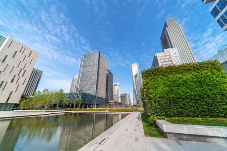 Modern city skyscrapers, glass wall business buildings under the sunlight in Quanzhou, China