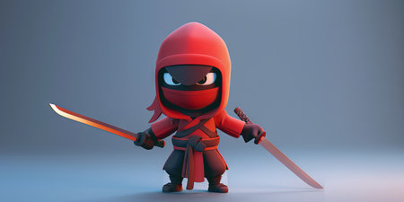 Red ninja with a sword in his hand. 3d illustration.