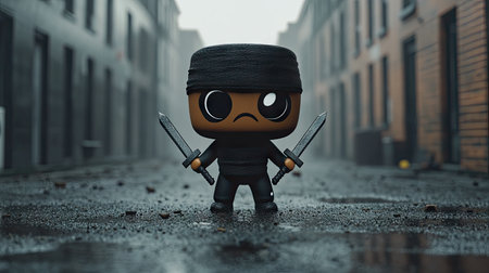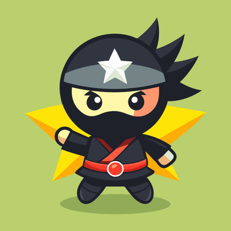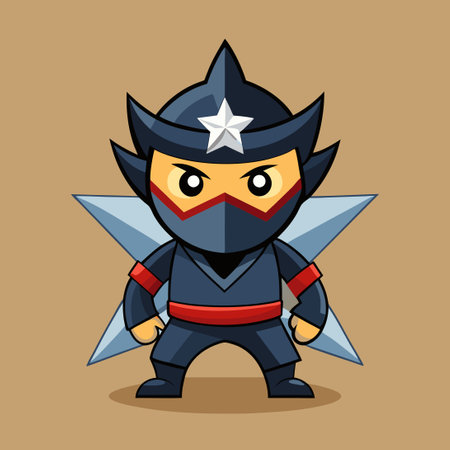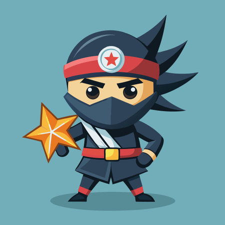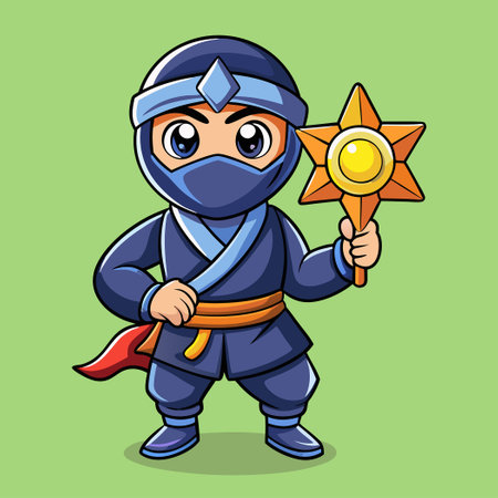 Perky Ninja Wielding Shuriken in Cartoonish Style