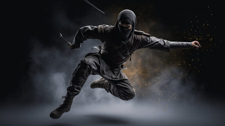 Ninja wearing equipment displayed in a full shot. A high quality image making by generative ai.