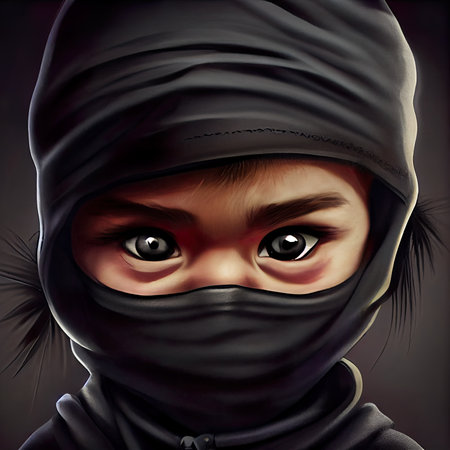 Portrait of a young boy dressed in a ninja costume, capturing the essence of stealth, martial arts, and imaginative play