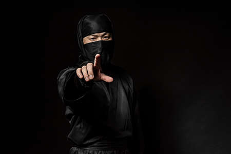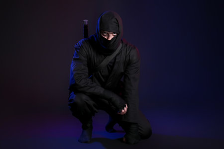 Male ninja on black background