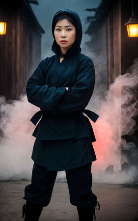 female ninja. Asian warrior costume. Generate AI