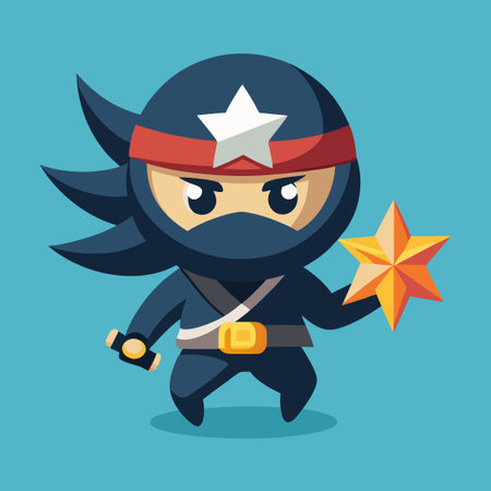 Adorable Ninja Wielding Sharp Shuriken in Cartoonish Flat Style