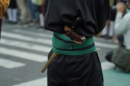 Closeup of a keris, a traditional Javanese weapon, worn by Yogyakarta palace soldiers during parades or traditional ceremonies.