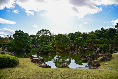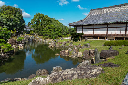 The Japanese garden view of nijo jo castle, Kyoto, Japan. World Heritage Site, Japanese traditional architecture in Kyoto, Japan. Background landscape of the beauty of Nijo Castle