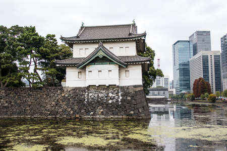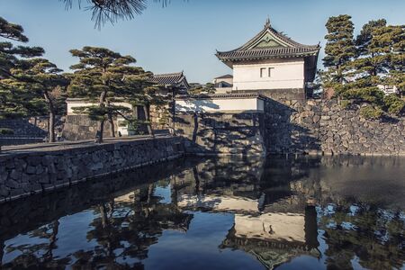 Guard tower over moat by Kikyomon Gate at Tokyo Imperial Palace Japan