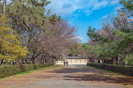 Kyoto, Japan - March 25, 2023: Imperial Palace and Park. Kyoto Gyoen National Garden in Kyoto, Japan