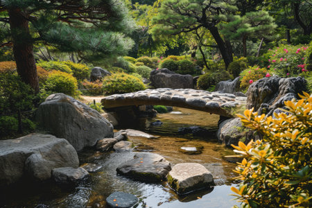 A peaceful Zen garden with a small stone bridge AI generated