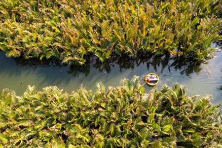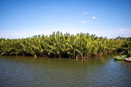 VIEW OF RUNG DUA BAY MAU OR COCONUT WATER ( MANGROVE PALM ) FOREST 7 HECTA IN CAM THANH VILLAGE, HOI AN ANCIENT TOWN, UNESCO WORLD HERITAGE, VIETNAM. HOI AN IS ONE OF THE MOST POPULAR DESTINATIONS