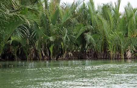Coconut palm trees on the bank of the Mekong River in Vietnam