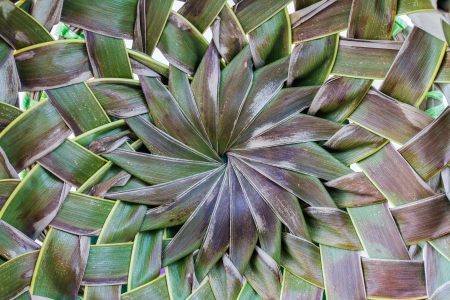 Closeup of dry green Pandanus Palm, Fragrant Pandan, Pandom wangi leaves make to flower on wooden