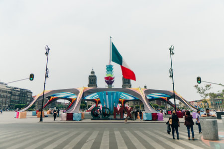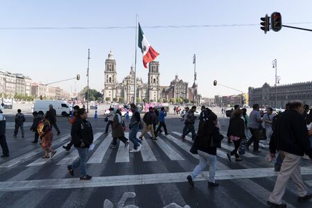 MEXICO CITY, MEXICO - JANUARY 30 2019 - Zocalo main town square crowded of people. Visited by thousand of people every day
