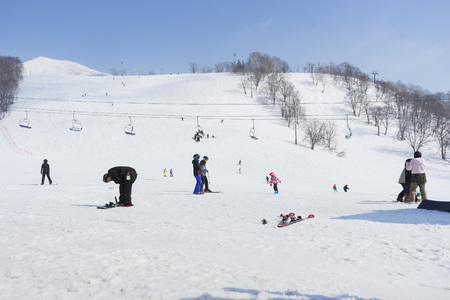 People enjoy ski at Kokusai Ski Area at Niseko, Hokkaido, Japan