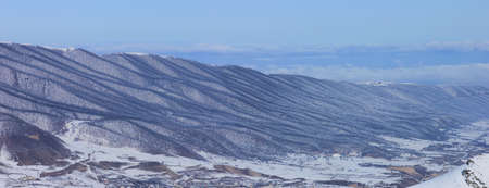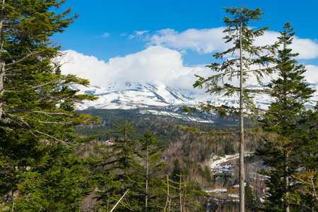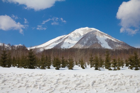 Mountain covered with snow,View from Shikisai no oka farm,Hokkaido, Japan,for background