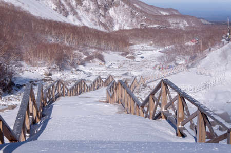 The top of the mountain in the snow. Japan. Hakkaydo. Shiretoko Peninsula. Shiretoko National Park. An excellent illustration.