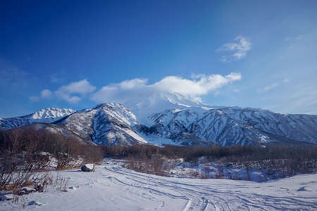 Snow covered Vilyuchinsky volcano in winter in Kamchatka peninsula in Russia