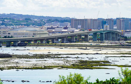 Tower apartments on the bay coast from Toyosu Ohashi Bridge on Loop Line 2 connecting Harumi Wharf and Toyosu Wharf