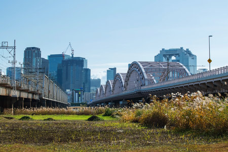 Scenery of the iron bridge over the Tama River