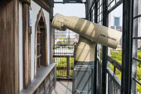 Hiroshima, Japan - May 5, 2016: Kowa prominar binoculars to see Hiroshima cityscape view from the Hiroshima castle.