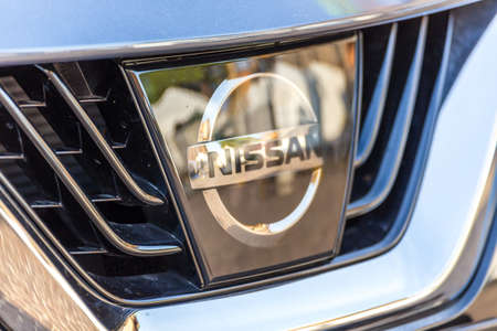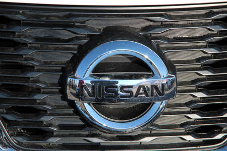 WETZLAR, GERMANY 2022-04-23: Nissan logo on a car. Nissan is a Japanese multinational automobile manufacturer.