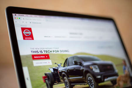 BELGRADE, SERBIA - MARCH 9, 2020: Nissan web site on computer screen in Belgrade, Serbia. It is a Japanese multinational automobile manufacturer founded at 1933.