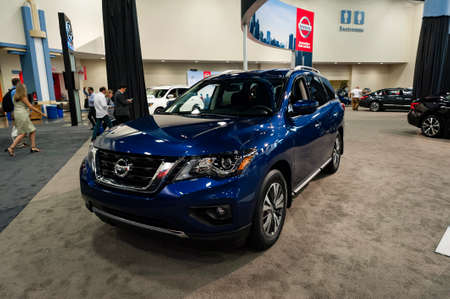 Miami, USA - September 10, 2016: Nissan Pathfinder SUV on display during the Miami International Auto Show at the Miami Beach Convention Center.