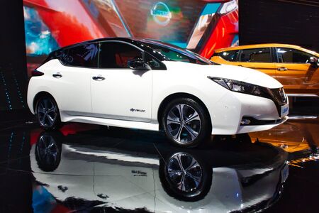 BANGKOK - JANUARY 19: Nissan Leaf, electronic power car from Nissan motor, being displayed at 6th BOI FAIR 2012 during January 6-22, 2012 in Bangkok, Thailand.