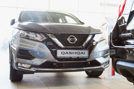 Petrozavodsk, Russia - June 19, 2019: Car in showroom of dealership Nissan in Petrozavodsk city in Russia