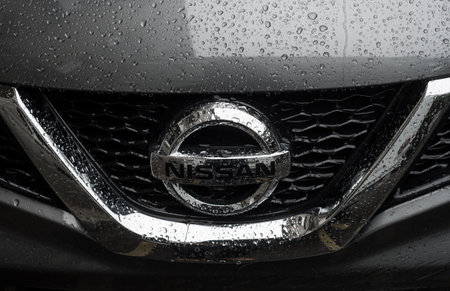 Minsk, Belarus May 2018 brand nissan emblem logo sign on auto during autoexhibition on nissan qashqai