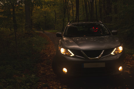 the defeated front headlight of the car. car accident. Insurance of car crash