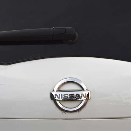 LUGO, ITALY - September 11, 2018: light enlightening NISSAN logo on a car body