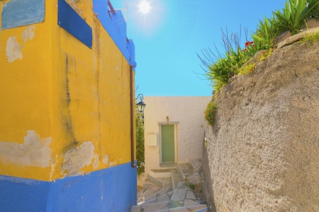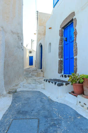 Street in Mandraki village on Nisyros island in Dodecanese island group, Greece.
