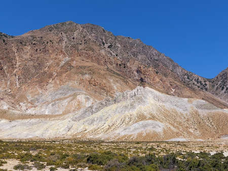 Beach near abandoned sulphur mines at Milos island, Cyclades, Greece