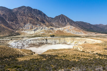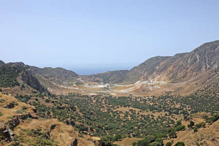 Nissyros, Greece - May 17, 2010: Tourists in the volcano's caldera