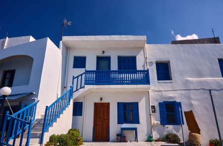 Architecture on the Cyclades. Greek Island buildings with her typical nostalgic colors.