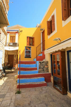 Symi Greece 07/02/2016 infrastructure for tourists and colorful architecture